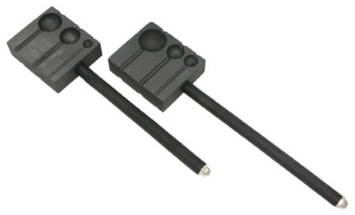 A graphite paddle with shapes machined into it with a high temperature resistant handle. The 6-in-One has six half spheres to make round beads and marbles. 3/8", 1/2", 5/8", 3/4", 7/8" and 1"
