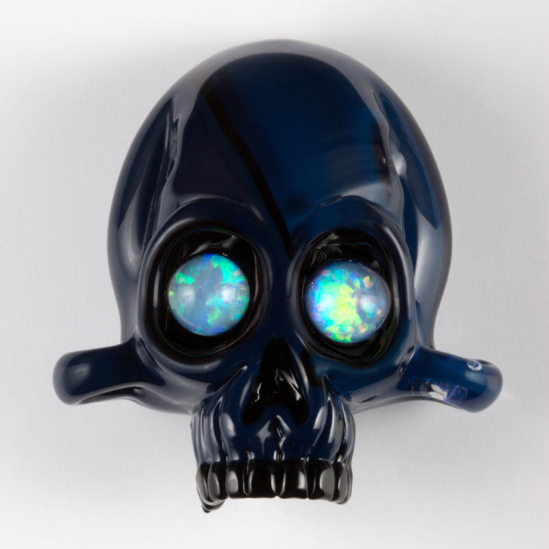 Northstar Berry Gumbolt is a fully opaque saturated dark blue. It is well suited for stringer application and blown work. It is not susceptible to reduction and is not flame sensitive. For best results, keep it in a neutral flame. It is a great backing color for such colors as Northstar Irrid and Northstar Turquesa, and goes well with Northstar Canary.