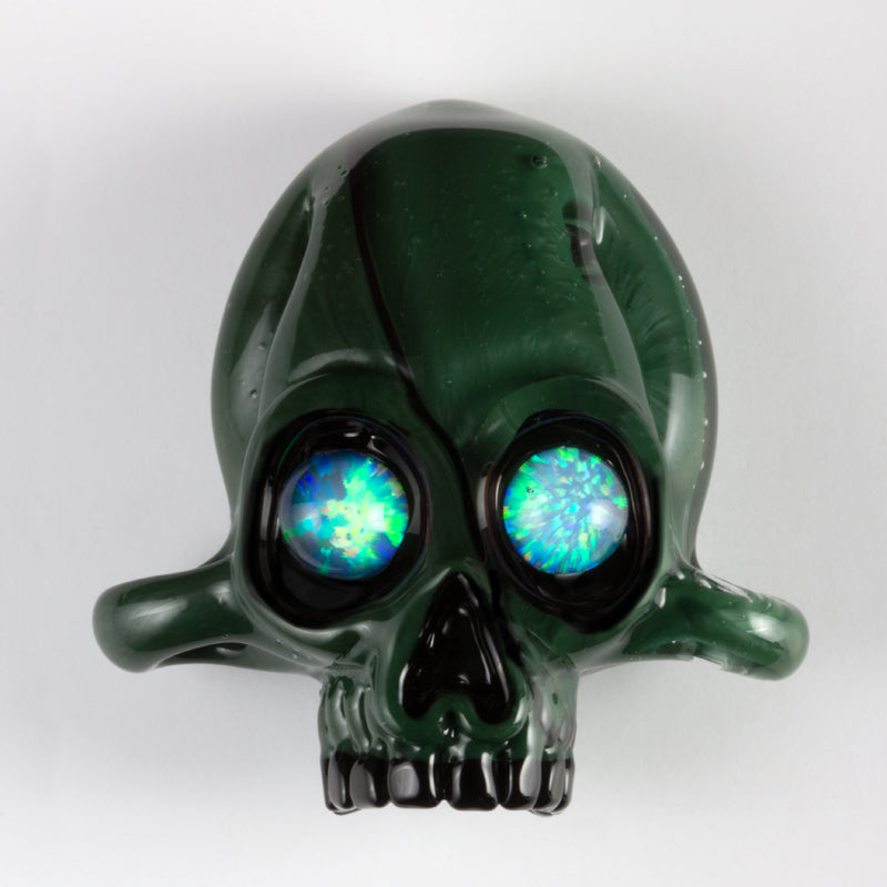 Northstar Evergreen is more dark than it's Northstar Forest Green counterpart, Evergreen is smooth and creamy. A neutral flame is the best when working this color but can be worked in practically any flame without fear of discoloration. It works well for encased applications. It is great for stringer applications and thin blown work. Try using it next to Northstar Forest Green and Northstar Jade for a beautiful green fade.