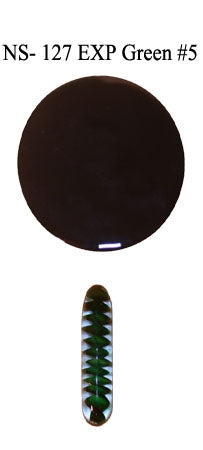When working Northstar Experimental Green #5 you can achieve many different colors. When used in an oxidizing flame the color will stay a very vivid neon emerald green. Use in a less hot flame to achieve an opaque blue similar to Northstar Blue Moon. Experimental Green #5 can also shift to a creamy white and lime green. Experimental Green #5 needs to be tried as it is hard to explain.