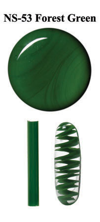 Northstar Forest Green is a very saturated, fully opaque green that just might be the most versatile green on the market today. It can be worked in any flame without fear of discoloration. It is recommended to stay in a neutral flame. It works well for encased applications. It is great for stringer applications and thin blown work. For a neat effect, try layering Northstar Multi over Northstar Forest Green.
