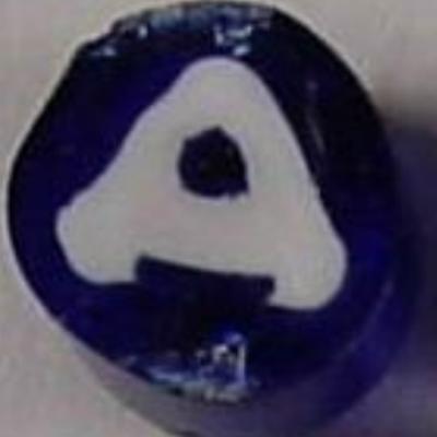 The color is a white letter surrounded by transparent cobalt blue. There are approx. 250 slices per pkg.