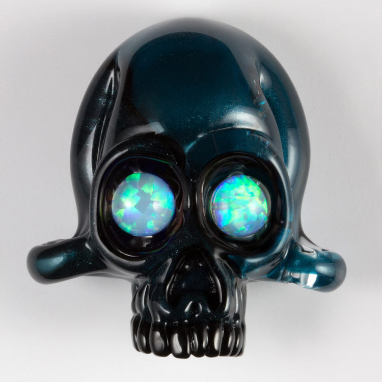 Loch Ness is a dark opaque, sparkly dark green that can be used in virtually any application. Best if worked in a neutral to oxidizing flame to achieve optimum results. Extended annealing tends to bring out a golden hue in this color.