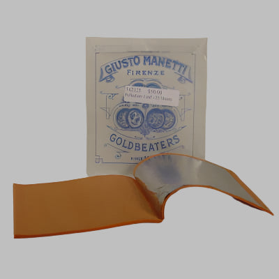 Package of 25 sheets of Palladium Leaf. 3-5/16" X 3-5/16".